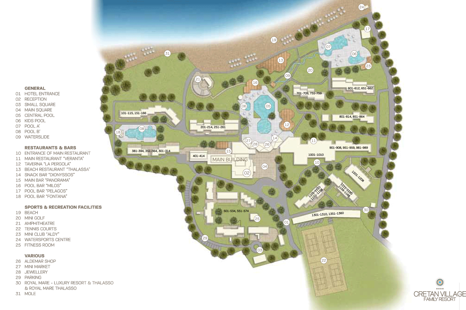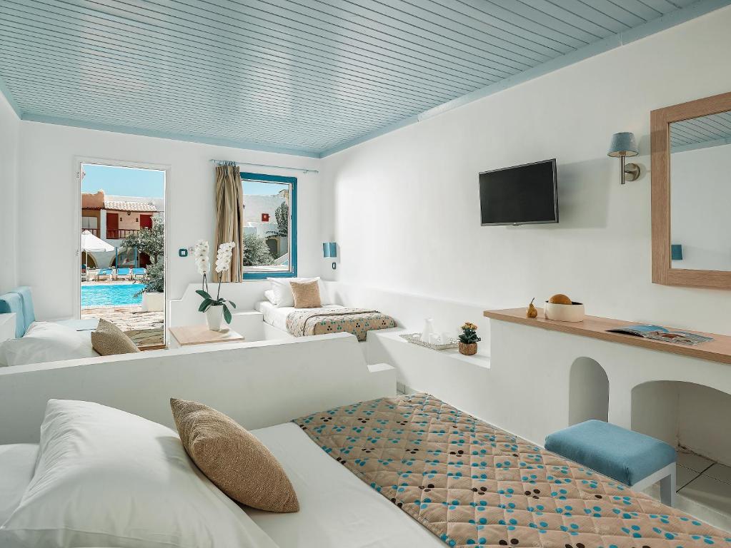 Котеджі готелю, виконані в найкращих традиціях грецьких селищ, розташовані неподалік Херсонісоса. На гостей чекає насичена денна та вечірня анімація. Рекомендуємо для активного сімейного відпочинку з дітьми.